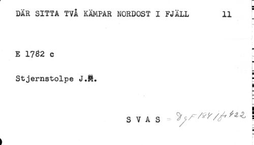 //// DÄR SITTA TVA KÄMPAR NORDOST I FJÄLL 11 * //// E 1782 c //// < //// < //// < //// Stjemstolpe J.M. ^ //// s V A s 3 ! //// f ////