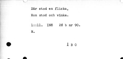 //// - . . f //// Där stod en flicka, //// Hon stod och vinka. //// 1::11. INE 2g b nr 90. //// N. //// . //// - ////