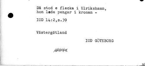 //// Dä stod e flecka i Ulrikshamn, //// hon lade pengar i kronan - //// - ^^^^^ //// IOD 14:2,s.39 //// ' //// Västergötland //// IOD GÖTEBORG //// ... __ ^^ //// ^^---- -----"-r*-.,--- ----- ---. ___-___r . ////