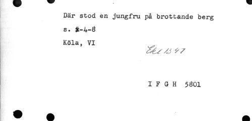 //// Där stod en jungfru på brottande berg //// s. 5-4-3 //// Köla, VI //// I F G H 5801 //// § ////