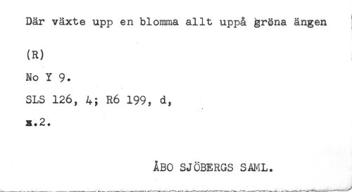 //// Där växte upp en blomma allt uppå ^röna ängen //// (R) //// No Y 9. //// SLS 126, 4; R6 199, d, //// x.2. //// ÅBO SJÖBERGS SAML. //// . . _ . _ _ , . . ^ _ . . . _ , , ////