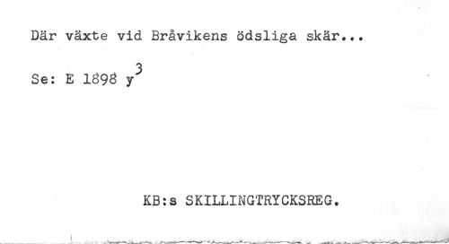 //// Där växte vid Bråvikens ödsliga skär... //// 3 //// Se: E 1898 y //// KB:s SKILLINGTRYCKSREG. ////