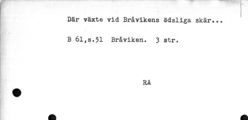 //// Där växte vid Bråvikens ödsliga skär... //// B 6l,s.51 Bråviken. 3 str. //// * //// RA //// MMi' ////