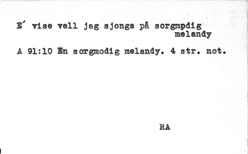//// E' vise vell jag sjonga på sorgmpdig //// melandy //// A 91:10 En sorgmodig melandy. 4 str. not. //// < //// t //// t //// ! //// { //// ' //// ! //// i //// f //// [ //// RA //// ! //// - ! //// < //// ! //// i //// ) ////