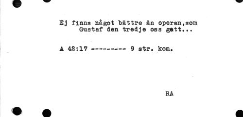 //// Ej finns något bättre än operan,som //// Gustaf den tredje oss gett... //// * //// A 42:17---9 str. kom. //// * % ////