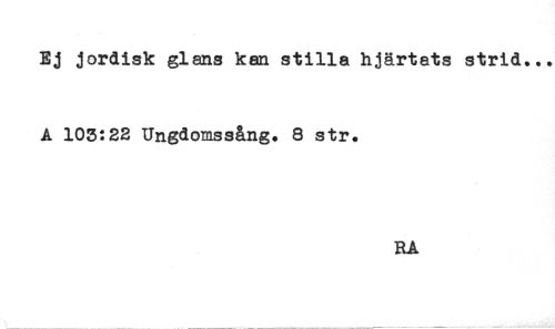 //// Ej jordisk glans kan stilla hjärtats strid... //// A 103:22 Ungdomssång. 8 str. //// RA ////