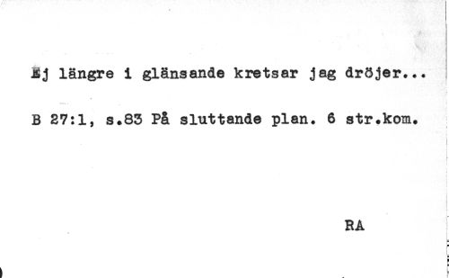 //// Ej längre i glänsande kretsar jag dröjer... //// < //// t //// B 27:1, s+83 På sluttande plan. 6 str.kom. //// i //// t //// ^ //// r //// t //// f //// < //// < //// i //// RA //// * r //// ^ E ////