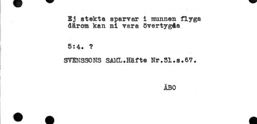 //// Ej stekta sparvar i munnen flyga //// därom kan ni vara övertygda //// 5:4. ? //// * //// SVENSSONS SAML.Häfte Nr.31.s.67. //// ÅBO ////
