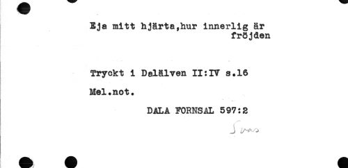 //// Bja mitt hjärta,hur innerlig är //// fröjden //// Tryckt i Dalälven II:IV s.16 //// Mel.not. //// < //// DALA FORNSAL 597:2 ////