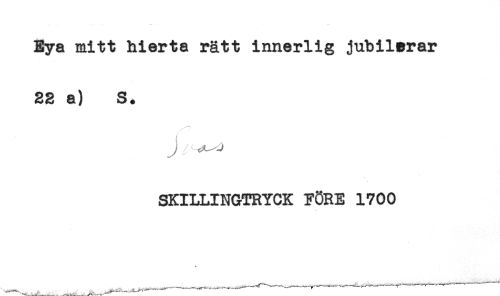 //// Eya mitt hierta rätt innerlig jubilerar //// 22 a) S. //// J //// /SKILLINGTRYCK FÖRE 1700 ////