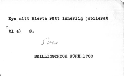 //// Bya mitt Hierta rätt innerlig jubilerat //// 21 a) S. //// . ? //// { //// i //// SKILLINGTRYCK FÖRE 1700 //// . ////