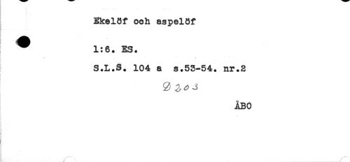 //// Ekelöf och aspelöf //// 1:6. ES. //// i //// S.L.S. 104 a s.53-54. nr.2 //// ^, ^ ^ //// i //// ÅBO //// * //// / ^ //// /