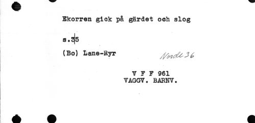 //// Ekorren gick på gärdet och slog //// * //// (Bo) Lane-Ryr //// V F F 961 //// VAGGV. BARNV. ////