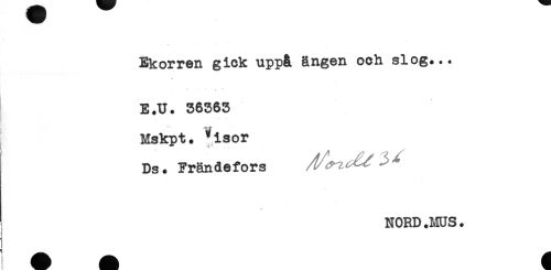 //// Ekorren gick uppå ängen och slog... //// ** . * < ' //// E.U. 36563 //// } "' * //// Mskpt. ^isor //// ..... //// Ds. Frändefors //// NORD .MUS. ////