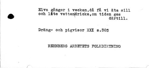 //// Elva gånger i veckan,då få vi äta sill //// ^ och l&te vattenidricka,om tiden ges //// ^ därtill. //// Dräng- och pigvisor XXI s.303 //// REHNBERG ARBETETS FOLKDIKTNING //// < //// r -___ ////
