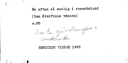 //// ( //// En afton så enslig i rosendelund //// (Den återfunne vännen) //// ! ' - . //// s.63 //// BENDIXON VISBOK 1923 //// / . r . ////