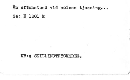 //// En aftonstund vid solens tjusning... //// Se: E 1681 k //// * //// KB:s SKILLINGTRYCKSREG. //// ....._......___....___....... //// /