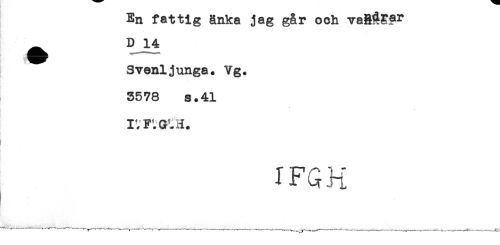 //// < - '. //// En fattig änka jag går och va&iEpr //// D 14 //// i) //// Svenijunga. Vg. //// 3578 s.41 //// * //// * //// IVFtGUI. //// IFGH ////