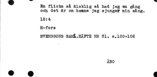 //// En flicka så älsklig så had jag en gång //// och det är om henne jag sjunget min sång. //// 12:4 //// H-fors //// SVENSSONS SAM&.HAFTE NR 51. s.100-102 //// f //// ÅBO ////