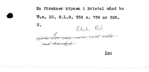 //// En förnäm er köpman i Bristol månd bo //// ^ HO. S.L.S. 552 s. 756 nr 506. //// -"r^r //// ÅBO ////