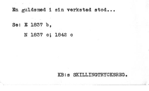 //// En guldsmed i sin verkstad stod... //// Se: E 1837 b, //// N 1837 c; 1843 c //// KB:s SKILLINGTRYCKSREG. ////