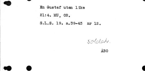 //// En Gustaf utan like //// 21:4. MU, OR. //// S.L.S. 19. s.39-43 nr 12. //// ! * //// ÅBO ////