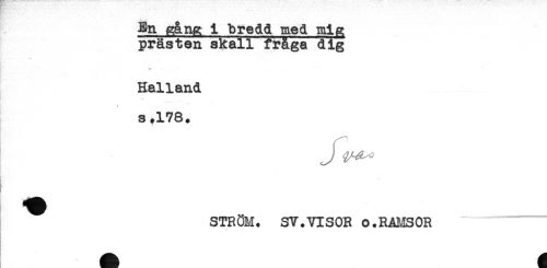 //// En gång i bredd med mig //// prästen skall fr&ga dig //// t - //// Halland //// .t.--' //// s.178. //// : //// J ^ //// L //// P //// ^ STRÖM. SY.VISOR o.RAMSOR //// * * ////