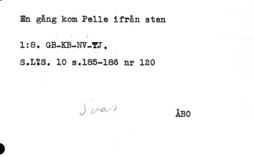 //// En gång kom Pelle ifrån stan //// * ' * //// 1:8. GB-KB-NV-TJ. //// ... - - . - ' //// S.LSS. 10 s.185-186 nr 120 //// J ÅBO ////