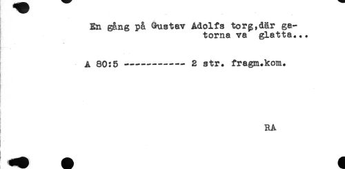 //// ^^^^ . - //// En gång på Gustav Adolfs tor g, där ga- //// torna va glatta... //// < //// A 80:5--- 2 str. fragm.kom. //// ; //// y //// L //// r //// RA //// t' //// (t ////