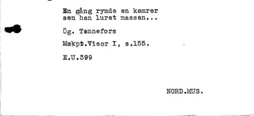 //// En gång rymde en kamrer //// sen han lurat massan... //// 8g. Tannefors //// Mskpt.Yisor s.155. //// E.U.399 //// t) //// i! //// g //// i ////