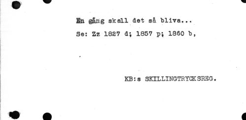 //// En gång skall det så bliva... //// . * * //// ! ' * //// Se: Zz 1827 d; 1857 p; 1860 b, //// * //// k //// KB:s SKILLINGTRYCKSREG. //// ! ' ' ////