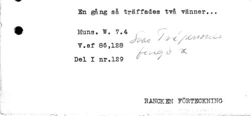 //// En gång så träffades två vänner... //// r //// t- //// W Muns. W. 7.4 //// V.af 86,128 //// Del I nr.129 //// l //// i //// ! //// RANCKEN FÖRTECKNING //// ! //// t, ' ' .. - ' "I * - //// ' .....T " ' " "" ** ' ^ ^ - ' * . ^ ' ^ - . - . ^ . . - . ^ - - . - ' - ' ' ' - - - ^^ ' ////