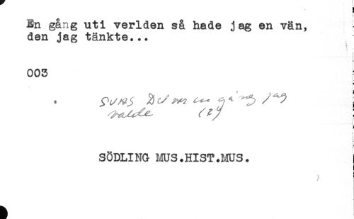 //// - u //// En gång uti verlden så hade jag en vän, //// den jag tänkte... //// 003 //// B //// \ //// SÖDLINO MUS.HIST.MUS. i //// i //// ä ////