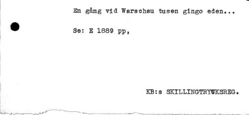 //// En gång vid Warschau tusen gingo eden... //// * Se: E 1889 pp, //// i //// s //// KB:s SKILLINGTRYCKSREG. //// .. * ----'--^-____...___ . ////