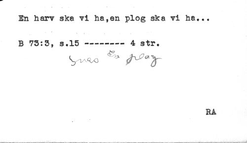 //// En harv ska vi ha,en plog ska vi ha... //// ^ A . . < //// B 73:5, s.15-----4 str. //// RÅ ////
