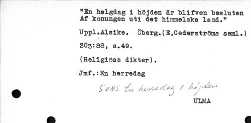 //// - ' //// Uppl.Alsike. Oberg.(E.Cederströms saml.) //// * * //// 303:88, s.49. //// (Religiösa dikter). //// Jmf.:En herredag ////