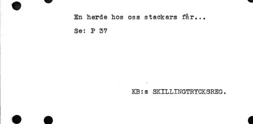 //// En herde hos oss stackars får... //// Se: P 37 //// t //// ! - //// KB:s SKILLINGTRYCKSREG. //// c ////