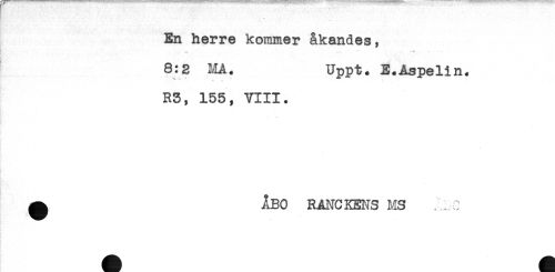 //// En herre kommer åkandes, //// ! - ...... //// . //// 8:2 MA. Uppt. E.Aspelin. //// * ^ //// R3, 155, VIII. //// ^ ÅBO RANCKENS MS . . C ////