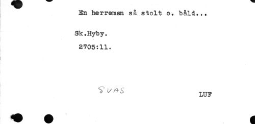//// En herreman så stolt o. båld... //// * //// Sk.Hyby. //// 2705:11. //// i //// LUF ////