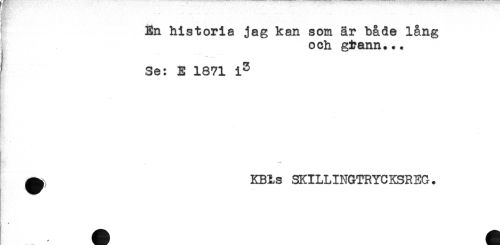 //// ' . //// UKr; - * '- - - -- - //// En historia jag kan som är både lång //// och girann... //// f Se: E 1871 i^ //// . //// E'. //// ^ KBls SKILLINGTRYCKSREG. ////