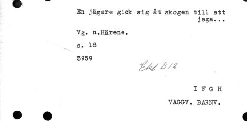//// En jägare gick sig åt skogen till att //// j aga*.. //// Vg. n.Härene. //// s. 18 //// 3959 //// ( //// t ////