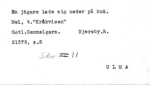 //// En jägare lade sig neder på knä. //// .....- * -- s //// Mel, t."Kråkvisan" //// Gotl.Gammelgarn. Bjersby,R. //// 21379, s.5 ////