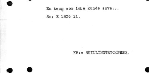 //// En kung som icke kunde sova... //// Se: E 1856 11. //// ! //// KB:s SKILLINGTRYCKSEEG. ////