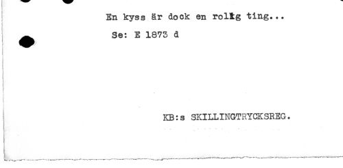 //// En kyss är dock en rolig ting... //// ^ Se: E 1873 d //// ( //// t' //// i //// I //// ' KB:s SKILLINGTRYCKSREG. //// t " . ' * * * ' ////