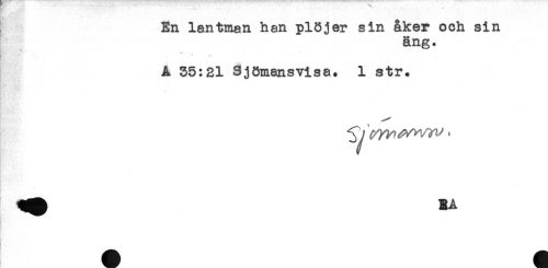 //// En lantman han plöjer sin åker och sin //// äng. //// '* //// A 55:21 Sjömansvisa. 1 str. //// .. //// , //// _ ////