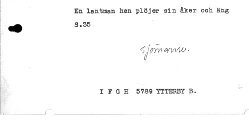 //// En lantman han plöjer sin åker och äng //// ^ S.35 //// t //// * //// I F G H 5789 YTTERBY B. //// __/.......y ////