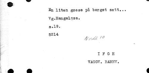 //// En liten gosse på berget satt... //// Vg.Hangelssa. //// s.19. //// 5214 //// r //// I F G H //// VAGGV. BARNV. ////