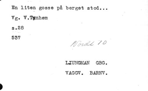 //// En liten gosse på berget stod... //// Vg. V.Tpnhem //// * //// 3.28 //// t ** ' //// 557 //// LJUNGMAN GBG. //// VAGGV. BARNV. ////