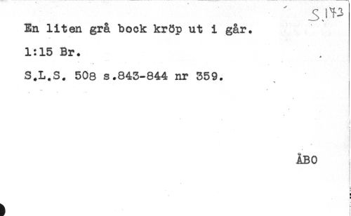 //// En liten grå bock kröp ut i går. //// 1:15 Br. //// . - //// S.L.S. 508 s.843-844 nr 359. //// i //// < //// < //// - * //// < ^ //// ÅBO ////