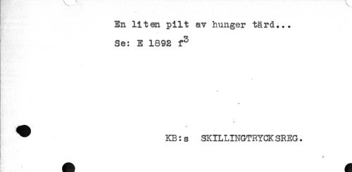 //// En liten pilt av hunger tärd... //// -* //// Se: E 1892 f^ //// t //// ^ KB: s SKILLINGTRYCK SREG. ////
